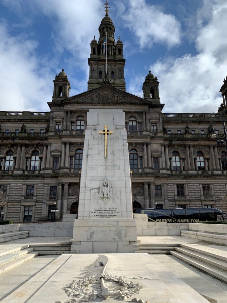 As in London, it provides the setting for remembrance services every year and unfortunately, with the passing of almost 100 years, fewer and fewer people now realise that Burnet placed his monument at the east end of George Square specifically so that those who gathered in the square would be looking towards the battle fields of France and Belgium while they commemorated those who had lost their lives there.