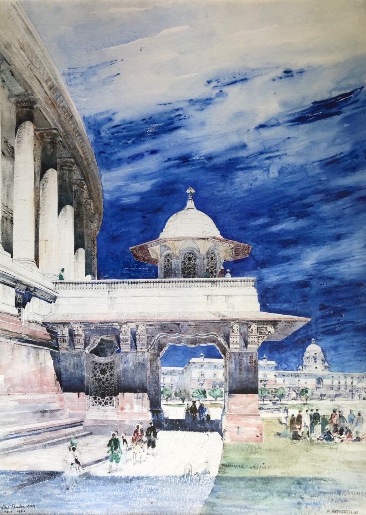 William Walcott (1874-1943) was born in Odessa to a mixed Scottish-Russian family and he studied in St Petersburg and Paris before establishing a successful architectural practice in Moscow, completing several major buildings, including the surviving Metropol Hotel. He moved to London in 1906 after which he established himself not only as a very successful architectural draughtsman but also as the leading etcher of his day. He developed a strongly impressionistic style in gouache and watercolour, becoming a regular illustrator of fellow architects’ designs at the Royal Academy Summer Exhibition. Of all his many superb illustrations perhaps the most famous were his set of perspectives of Imperial Delhi which he produced for Edwin Lutyens and Herbert Baker which were said to have ‘radiated the heat of India’. Lutyens later claimed that they had ‘misled’ him, but as the architect of most of the buildings, it was a pretty lame excuse for his own mistake. Unfortunately, WW2 brought his practice to a crashing halt and he committed suicide in 1943.