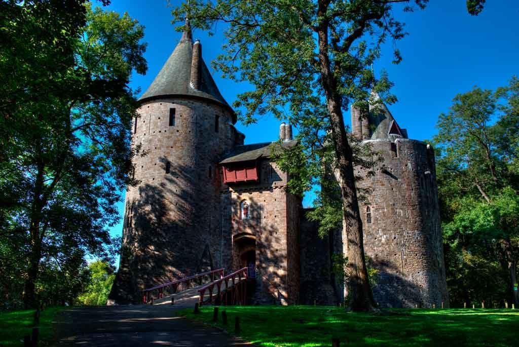 Lord Bute was himself a fascinating character – a convert to Roman Catholicism and an admirer of all things Medieval – he preferred, like Burges, the architecture of the Age of Faith to that of the Age of Reason. Fortunately for Burges, he was also the richest man in the world at the time and the combination of his extraordinary wealth and Burges’ extraordinary imagination produced two buildings – Cardiff Castle and nearby Castell Coch (top) – in which they indulged their shared passion for the past in the creation of two fairy-tale retreats from industrial Britain.