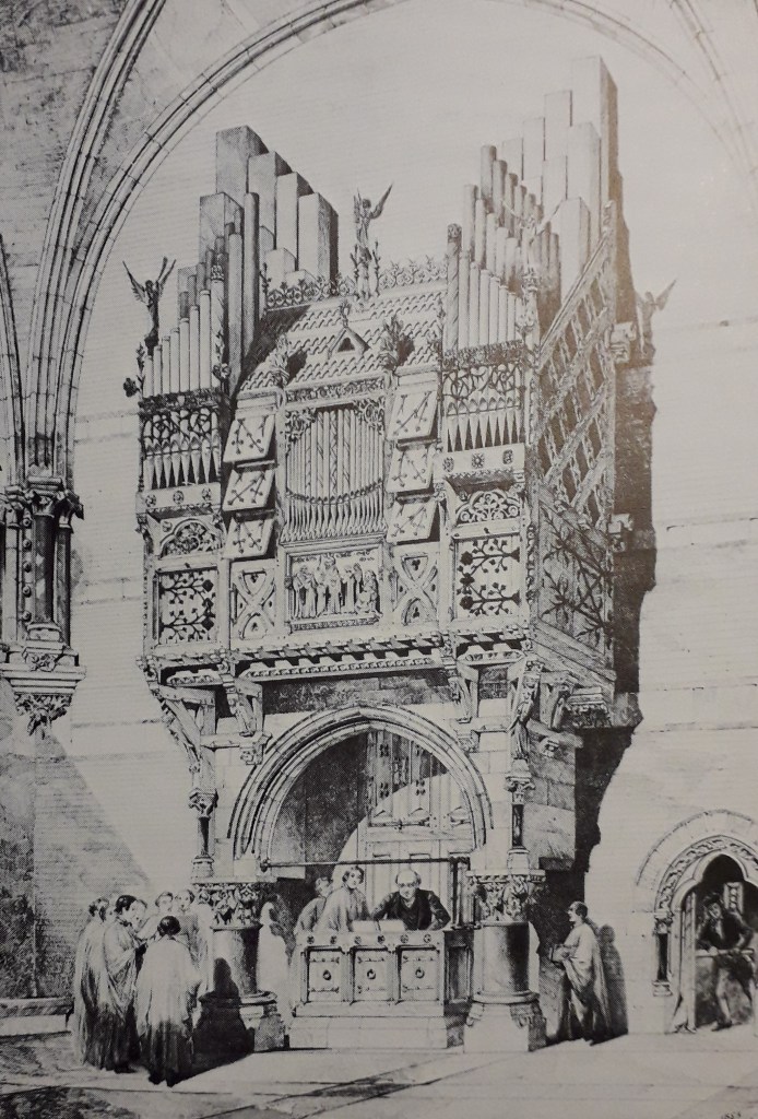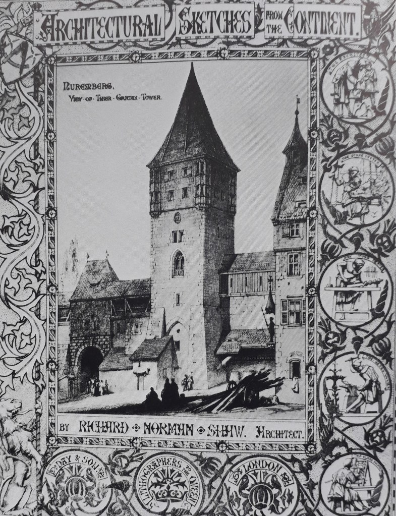Like most of his contemporaries, his architectural education included several sketching tours of Europe and it was the drawings from his travels, which were published as ‘Architectural Sketches from the Continent’ in 1858, which first attracted attention to his exceptional abilities. While described as sketches, these were actually beautifully rendered views such as the tinted lithograph of the Tiergarten Tower in Nuremberg, which he included in the cover to his book.