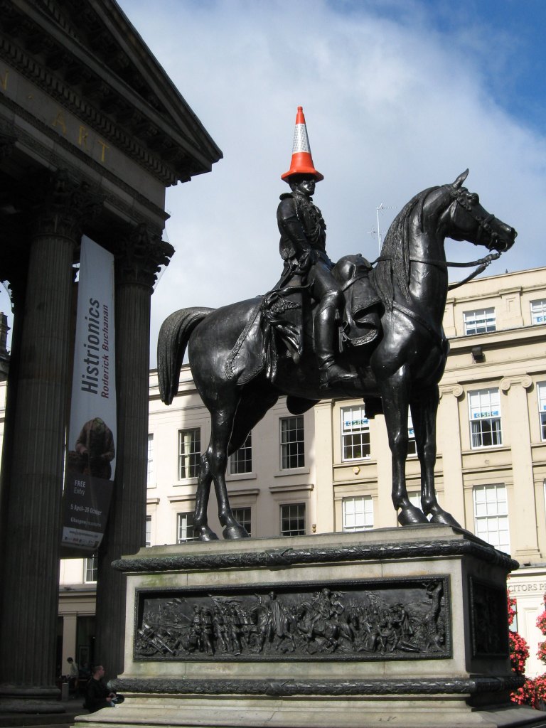 And then there’s his particularly fine equestrian statue of the Duke of Wellington in Glasgow (the former City of Culture), which is usually crowned with a plastic traffic cone.