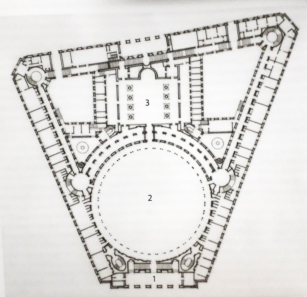 The plan of the building is one of the most elegant that you are ever likely to come across (despite the irregular shape of the site), and it offers the great central drum of the main courtyard as a mighty wheel which drives the cogs of the staircases which in turn distribute the radial energy created, throughout the corridors and offices. It is a work of art in itself.
